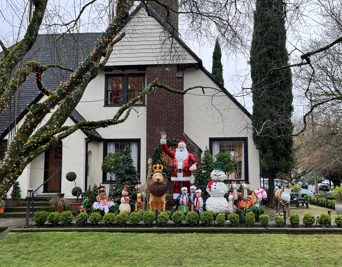 Come on a daylight ride to see holiday decorations in the Alameda area. This will include the Chris Willis display of 400 molded Santa figurines that moves to a new Portland location every year. This ride takes place in daylight, as not everyone is comfortable riding after dark. The ride goes out as far as the Rose City Golf Course, where the Bar & Grill makes for a great mid-ride stop before looping back to Irving Park. The Bar & Grill makes fantastic fries, and we are providing them free to everyone on the ride. The route to the golf course is 4.5 miles, and total ride distance for the loop is 9.4 miles. This is a BikeLoud PDX affiliated ride so we'll go by some recently-installed bike infrastructure. This includes the improved crossing at NE 57th, the northern end of the 70s Greenway, and the crossing of the NE Hancock Greenway across Sandy Blvd. Hope to see you on the ride!