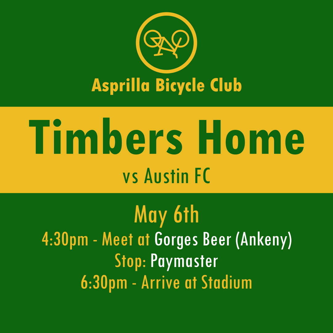 Gathering at the rainbow road to ride to Providence Park for the Timbers match against Austin FC. Likely to make one stop on the way and arrive an hour before kick off. Feel free to get to Ankeny as soon as you'd like.