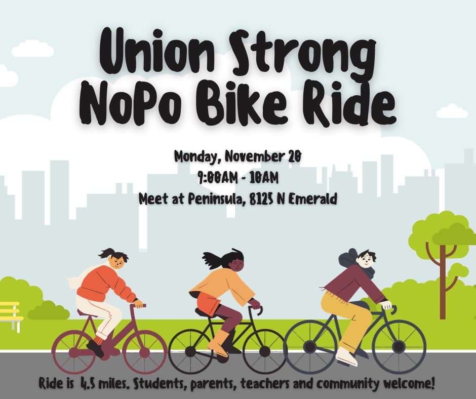 Come join a community ride starting at Peninsula Elementary at 9AM on Monday, November 20. We'll loop through the neighborhood visiting Trenton Park, Rosa Parks Elementary, Cesar Chavez Elementary, Astor Elementary, and Columbia Park before returning to Peninsula. The ride should wrap up around 10AM.