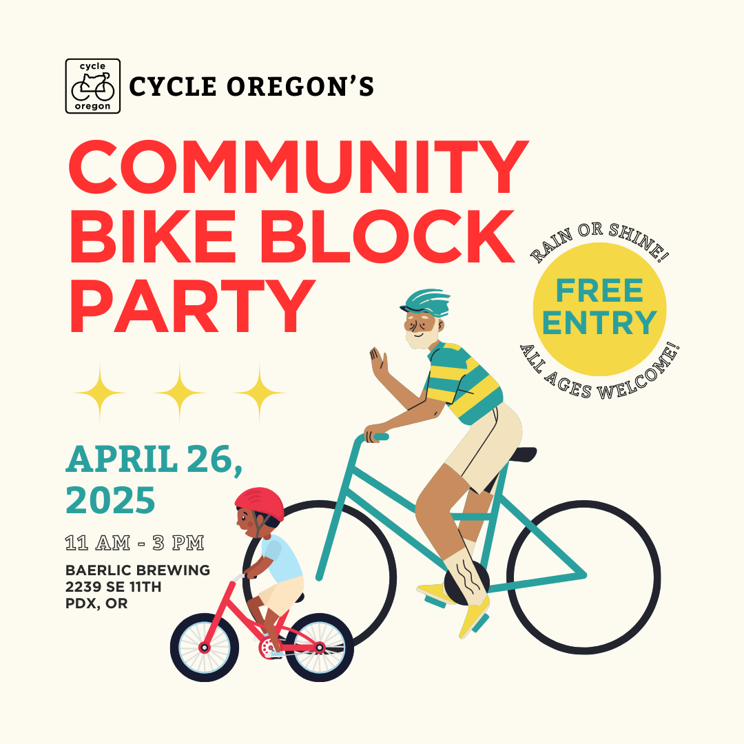 Cycle Oregon’s Community Bike Block Party is the kickoff to your riding season. This is a free event open to all, come ride with us. We’re closing SE Sherman Street between 10th & 11th next to Baerlic Brewing for valet bike parking, bike rodeo courses for folks of all ages and we’ll have an expo inside and outside with Oregon brands, community partners and riding groups. Our mission is to bring the joy of riding a bicycle to all of Oregon and we appreciate your support. More details on our blog: https://cycleoregon.com/blog/community-bike-block-party/