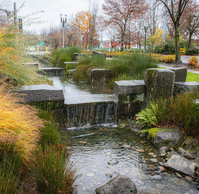 This ride will tour public art and Public Works sites that mimic natural waterways, including the Oregon Convention Center rain garden and the downtown Open Space Sequence. It will be a relaxed paced ride (8-10 mph) along low-stress bikeways, with frequent stops to show off gems of Portland art, architecture and inspiration that represent our connection to the natural world, specifically rivers and streams. We will have experts from Portland Water Bureau, Bureau of Environmental Services and the Halprin Landscape Conservancy along to provide color commentary. This is a no-drop loop ride perfect for folks new to Portland, new to the bike or just getting back on their wheels. About 9 miles long round trip. Coffee, snacks and restroom available at the start location. Bring a friend because no one is left behind! And bring appropriate clothing - current forecast is cloudy, but you know Portland weather. Free and open to everyone. We have some free BIKETOWN codes (credit to ride for free) available specifically for this ride! To receive a BIKETOWN code, email Timo Forsberg at timo.forsberg@portlandoregon.gov .