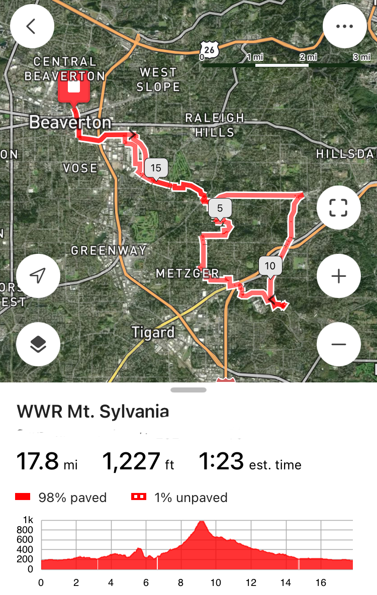 Let's ride to Mt. Sylvania for the views. It's cold out and climbing wont be as sweaty! Wanna roll to get some great sites of the area? It's a hill to get up but it is also downhill back to B.T.C. We will leave a little earlier since it is a pop-up and get back home before it's too late. So we'll meet up at 6:30 and roll at 7pm. Bring your lights! Bring your friends! Make some friends. We love you. Ride is roughly 17 miles and 1,200+ feet of elevation. You got this. Take the MAX to B.T.C. We've made it east for you to get here.