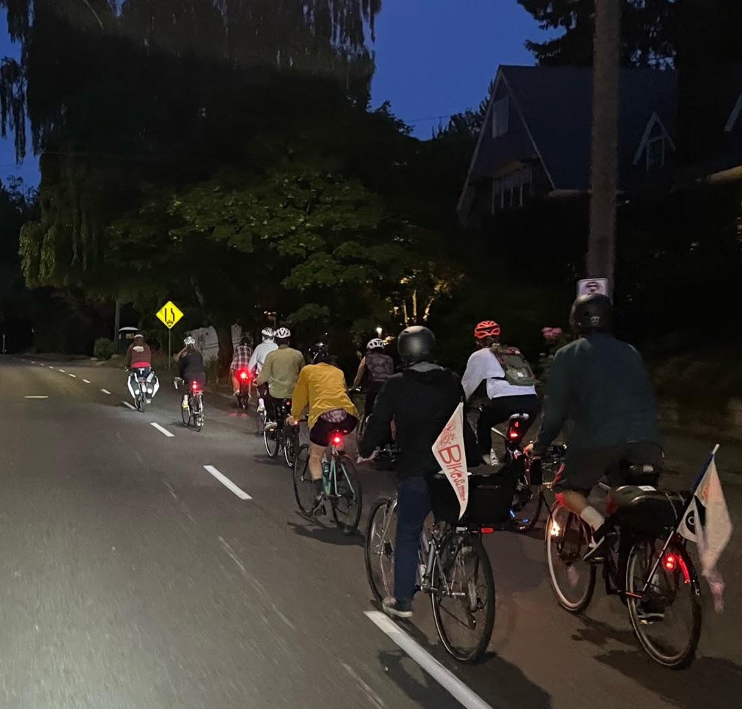 Friday night ride is a social ride for people who enjoy a sporty pace and adventurous routes. Every ride is different but generally range between 15 and 25 miles and you can expect some climbing and higher speeds than your average pedalpalooza ride. NOT NECESSARILY A NO DROP RIDE. Riders should be self sufficient and have a plan for getting themselves home. This is a bicycle-forward group ride. Pedal-assist ebikes are ok (class 1 & 2). Throttle heavy, high speed battery powered motor bikes are not (class 3 & 4). If you're not pedaling it’s not a bicycle and you will asked to leave. Bring lights/locks/responsible vibes/a cup/ Casual pace with some extra zip 10-20ish mile rides with store stops/park stops/art stops NOT NECESSARILY A NO DROP RIDE… ESPECIALLY IN THE FALL/WINTER/SPRING. Be careful of slippery roads/leafs on ground/pot holes. Call out road hazards to help bike friends stay safe. 2nd Fridays are MMR - later night vibes to make it to Midnight Mystery Ride. If you want to lead a ride just ask! REPEAT… NOT NECESSARILY A NO DROP RIDE… ESPECIALLY IN THE FALL/WINTER/SPRING. Guest ride leaders wanted and appreciated! Instagram @fridaynightride